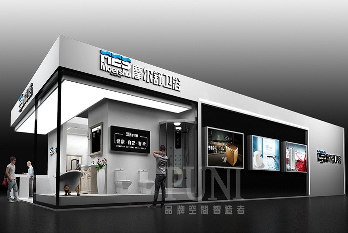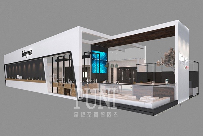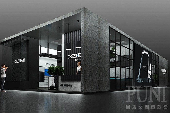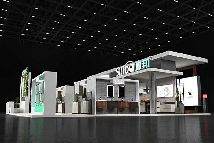 广东聪信家居是行业内知名的拉篮(收纳系统)、水槽和不锈钢水龙头(洗涤系统)、厨房挂件(装饰系统)和智能系统的产品生产企业,在珠三角地区拥有两大生产基地,员工数超过500人,以创新、健康、人性的设计理念为用户提供高品质厨房产品,深受用户青睐,国内各大城市设有体验终端,产品远销全球100多个国家和地区。 广东聪信家居展台外观设计以纯黑色的单层别墅为主,大型海报、品牌名为辅;室内布置了两个展示厅,一个接待台、产品展示台、洽谈区域组合而成。广东聪信家居展台给人整体感觉深沉优雅、精雕细刻。