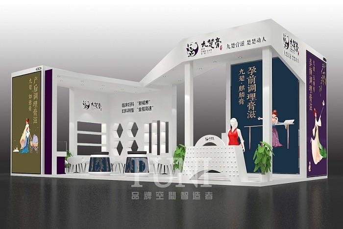 九楚标志的主色调为深紫色,也是九楚膏滋主要原料紫苏的颜色,沉稳、高贵、大气。标志主形为一只形态优美的凤凰,体现了楚文化和女性的特点;凤凰尾部自然延伸,幻化成一枝紫苏,表明九楚膏品牌定位是“女性健康调理膏滋”;整体为圆形,暗含“太极”形影,符合阴阳互补的中医理念和中和圆融的古代哲学思想。