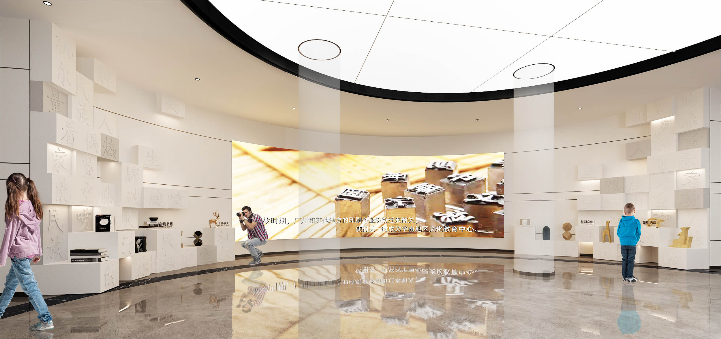 馆内设印刷艺术交流中心、印刷产品创意研发作品展示及印刷工艺文化传承体验区、印刷文化展陈区等。通过大量文献资料、实物模型及模拟操作、印刷老物件等形式,原汁原味再现传统印刷技术,生动展示博大精深的印刷文化,传承古老灿烂的印刷文明,让民众体验现代印刷技术的发展。