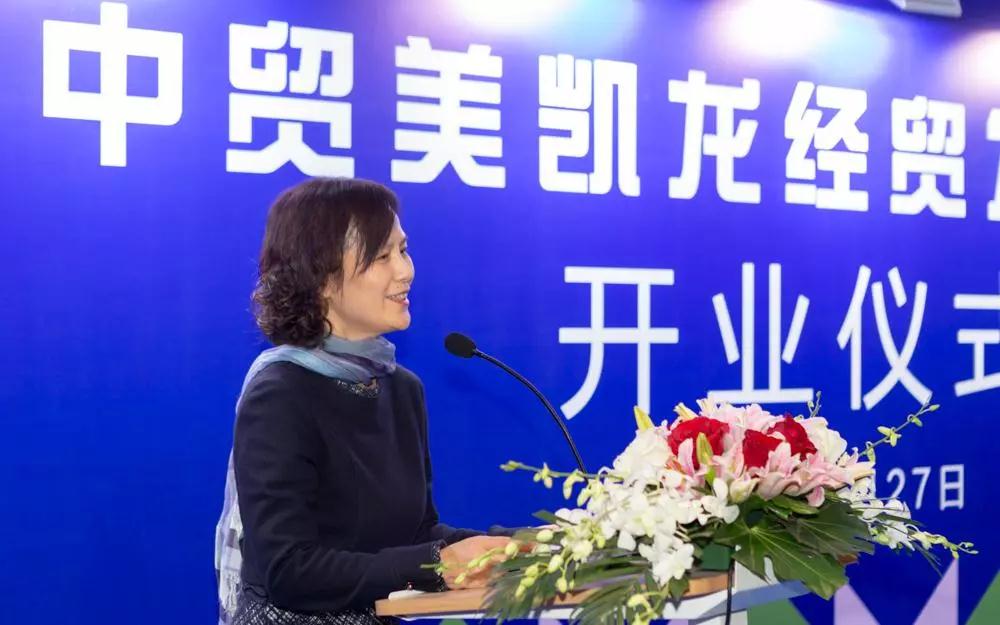 中国对外贸易中心(集团)企业管理部总经理梅灵宣读贺信