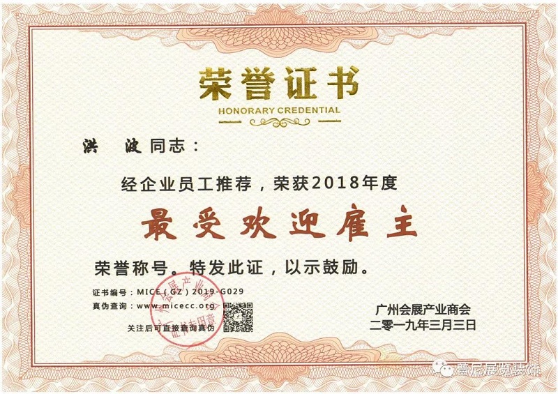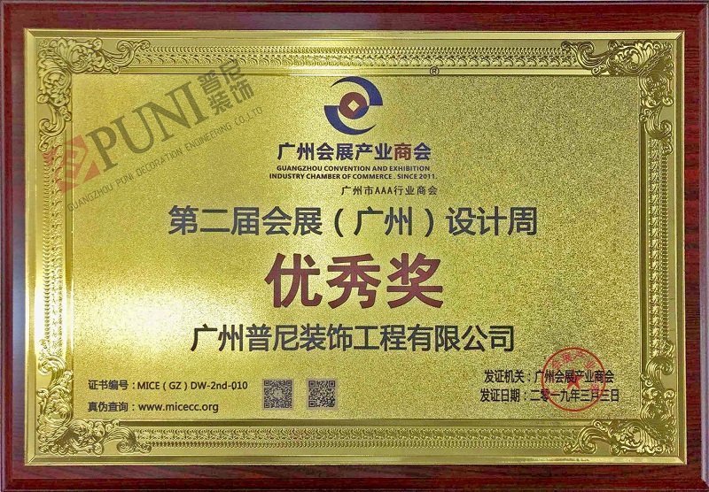 会展品牌服务商、第二届会展(广州)设计周 优秀奖、实体展位一等奖、最受欢迎雇主奖...